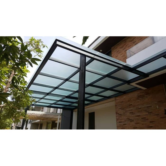 Material pengganti kaca yang hemat biaya. Inilah mengapa polycarbonate banyak diaplikasikan sebagai atap kanopi minimalis untuk carport jemuran teras dan sebagainya. Selain itu bahan polycarbonate juga terkenal sangat kuat dan fleksibel sehingga sangat cocok digunakan sebagai atap dalam jangka waktu lama.